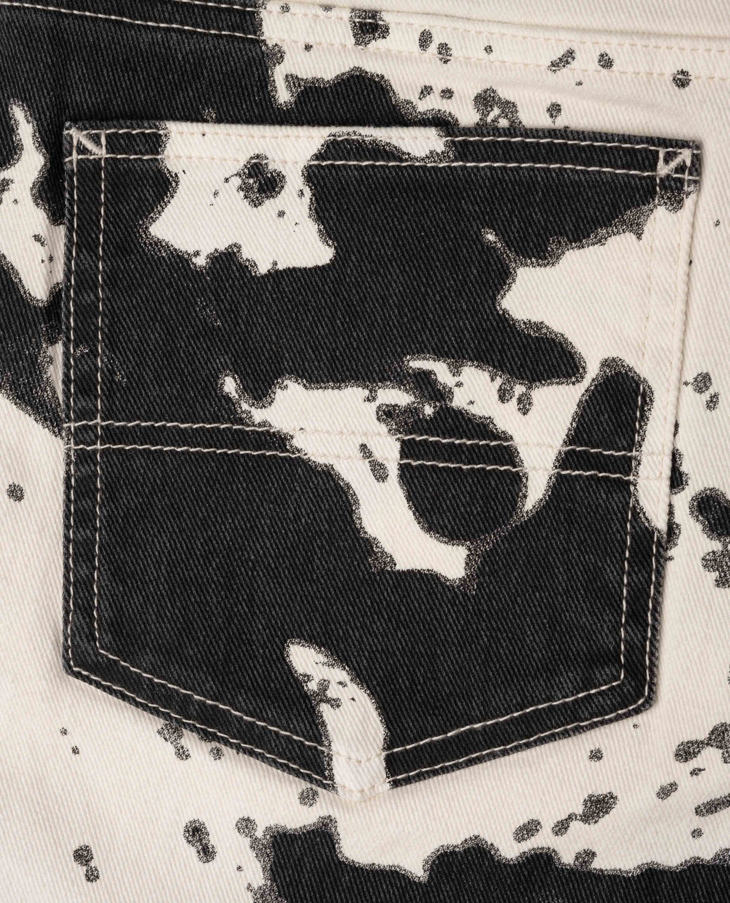 We started this psychological journey with our 10-ounce twill for the optimal blend of rugged structure and flexibility for daily J'action. Then we dyed it for a style that hides medium-to-large squid ink stains. Every item has a unique pattern due to the printing process.